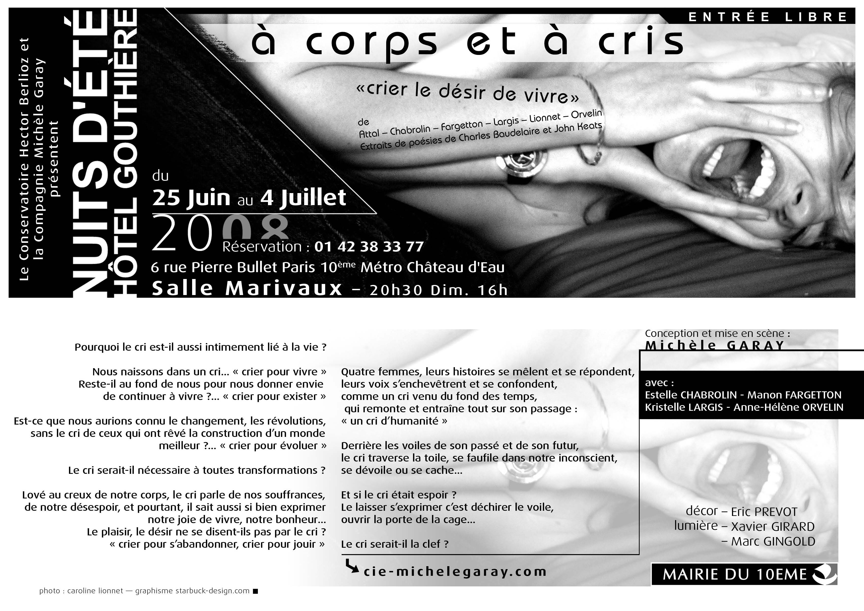 Compagnie Michèle Garay - à l'Affiche 2008 Nuits d'été Hôtel Gouthière - l'Affiche Dialogues des Carmélites - texte présentation - à corps et à cris - flyer - à corps et à cris - texte présentation - à corps et à cris - les comédiennes
